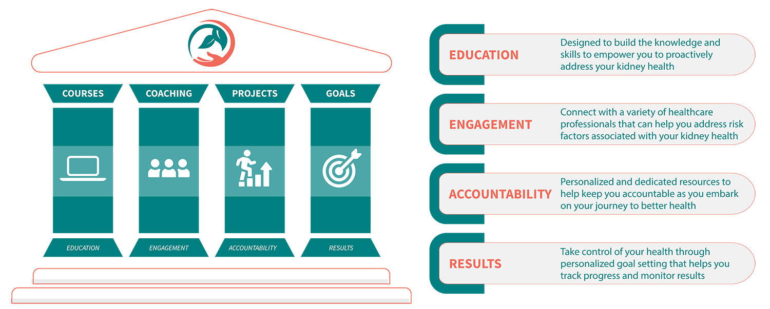 Provides interactive education & access to coaching and resources focused on healthy lifestyle changes to help individuals manage their chronic condition(s) through our 4 pillars of learning: